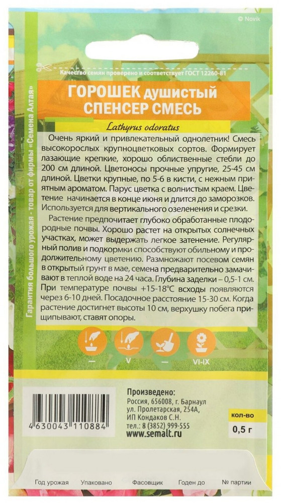 | Семена Алтая Горошек душистый «Спенсер»