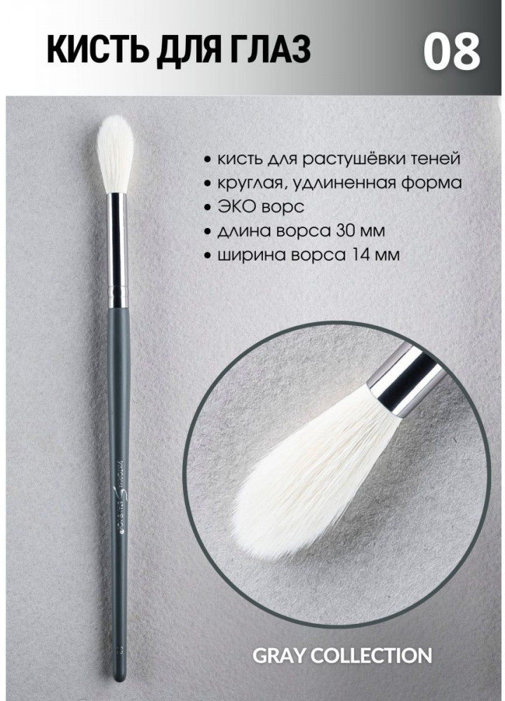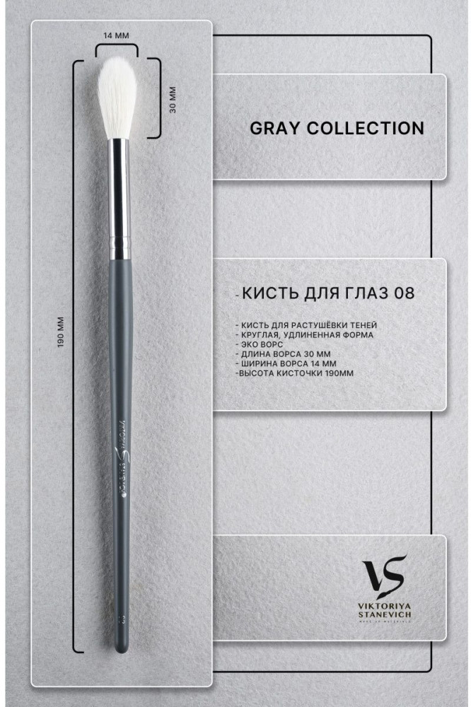 Viktoriya Stanevich Кисть для макияжа №08В данный момент этот товар отсутствует в продаже. Возможно, у нас найдется аналогичный или похожий товар здесь. Серия: Gray Collection Кисть для нанесения сухих текстур, теней, хайлайтера. Круглая, вытянутая форма на расширение к кончику. Эковорс не вызывает аллергических реакций, легкий в очищении, долговечный. Очень легкая удобная форма, инструмент приятно держать в руках. |
