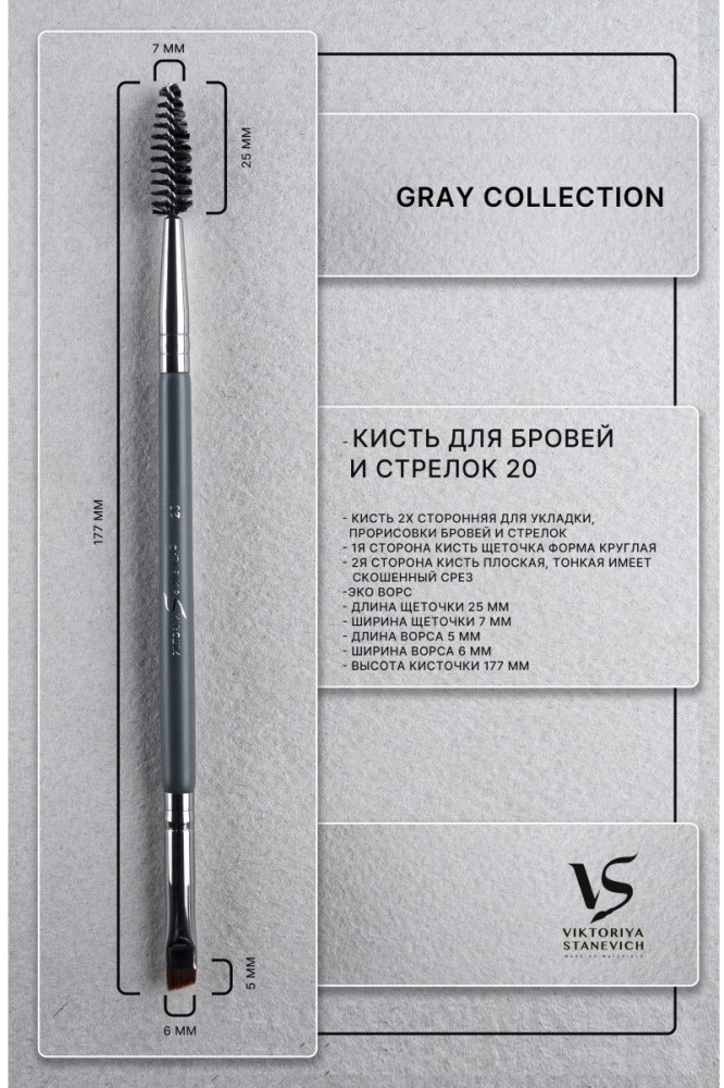 Viktoriya Stanevich Кисть для макияжа №20В данный момент этот товар отсутствует в продаже. Возможно, у нас найдется аналогичный или похожий товар здесь. Серия: Gray Collection Кисть двухсторонняя для укладки, прорисовки бровей, стрелок. Прорисовки волосков. Для мелкой работы в точных техниках. Плоская форма. Эковорс не вызывает аллергических реакций, легкий в очищении, долговечный. Очень легкая удобная форма, инструмент приятно держать в руках. |