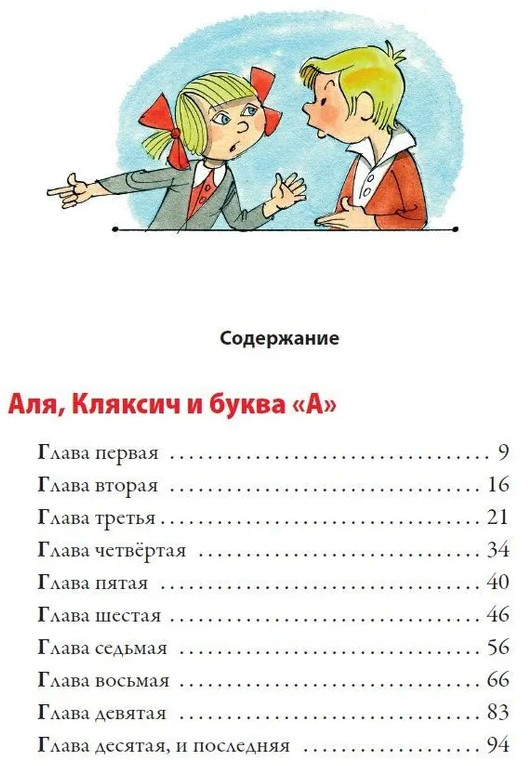 Ознакомиться со всей книгой в электронном виде можно по ссылке на сайте СЗКЭО Подарочное иллюстрированное издание отпечатано на отечественной пигментированной книжно-дизайнерской бумаге кремового цвета с закладкой ляссе одного цвета с капталом. Книга Ирины Токмаковой «Аля, Кляксич и буква „А“. Три истории» включает три повести о приключениях отважной девочки Али в мире букв и цифр: «Аля, Кляксич и буква „А“», «Может Нуль не виноват? », а также «Аля, Кляксич и Вреднюга». Учить буквы и цифры с помощью этой книги очень интересно! Кроме увлекательных историй в ней есть и здания для ребят. Издание великолепно иллюстрировано цветными картинками народного художника РФ Виктора Чижикова.