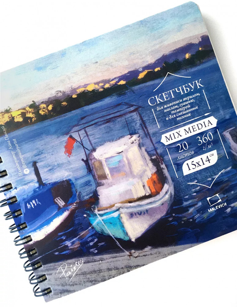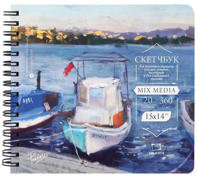 МалевичЪ Скетчбук для акрила, гуаши и смешанных техник-30% +22 компактный размер плотность бумаги удобство использования