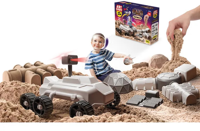 Art Sand Песок кинетический «Миссия на Марс»В данный момент этот товар отсутствует в продаже. Возможно, у нас найдется аналогичный или похожий товар здесь. Готовимся к полету в космос вместе с набором из кинетического песка. Для этого все необходимое есть в наборе. Кинетический песок имеет безопасный, экологичный состав: песок и небольшой процент полимерных материалов. Лепка из такого песка всегда приятная для детских пальчиков, он мягкий и воздушный. |