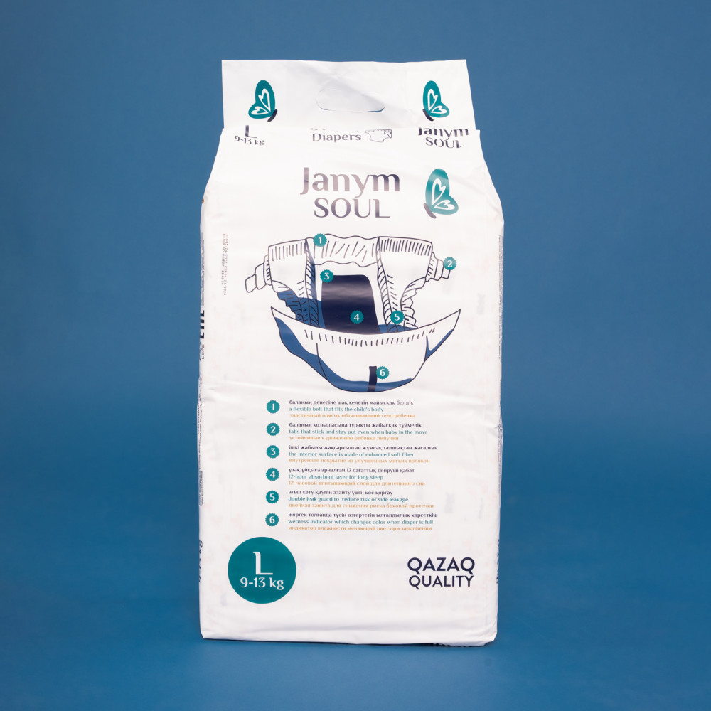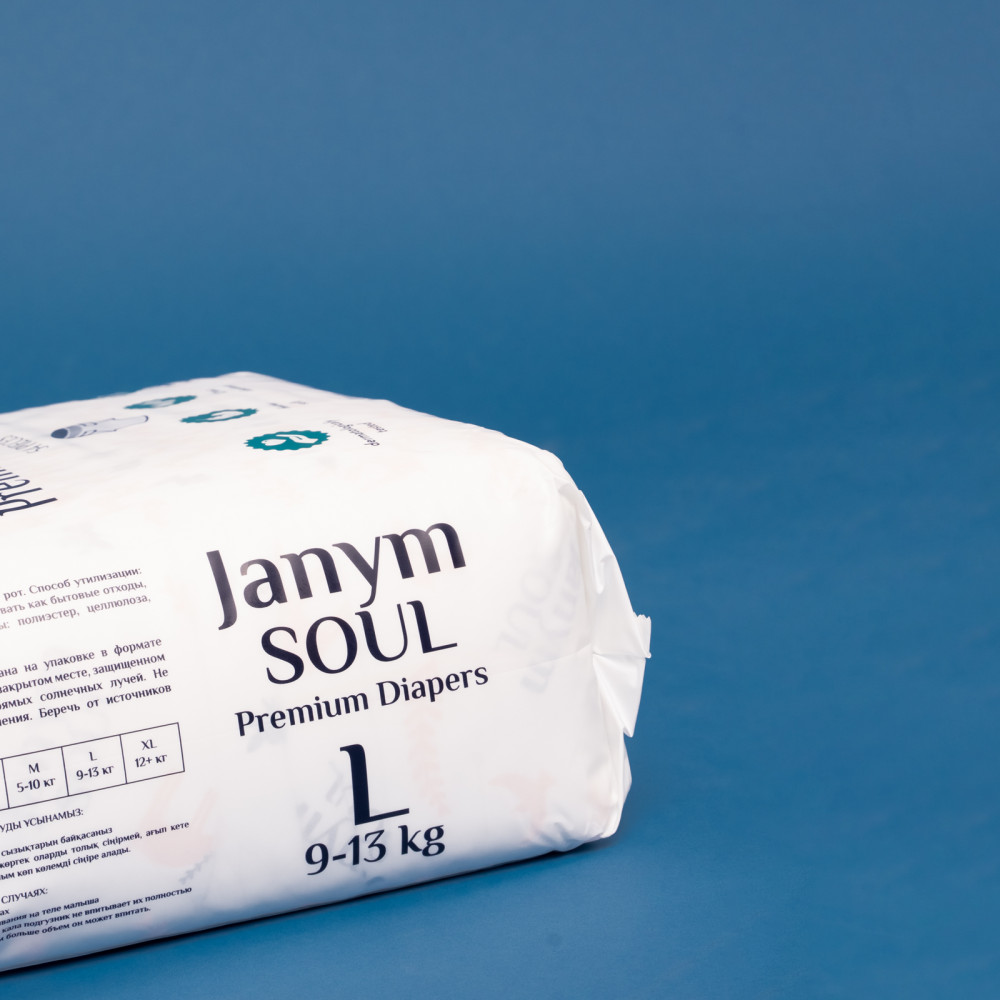 Бренд «Janym Soul» был основан в 2022 году. Бренд выпускает подгузники премиум класса. Приверженность компании высоким стандартам качества, использование современных технологий изготовления и премиальных материалов сделали бренд «Janym Soul» популярным на территории Казахстана. Особенностью подгузников является высокий уровень абсорбируемости, комфорт и безопасность для нежной детской кожи. Продукция компании имеет сертификаты, гигиенические заключения.