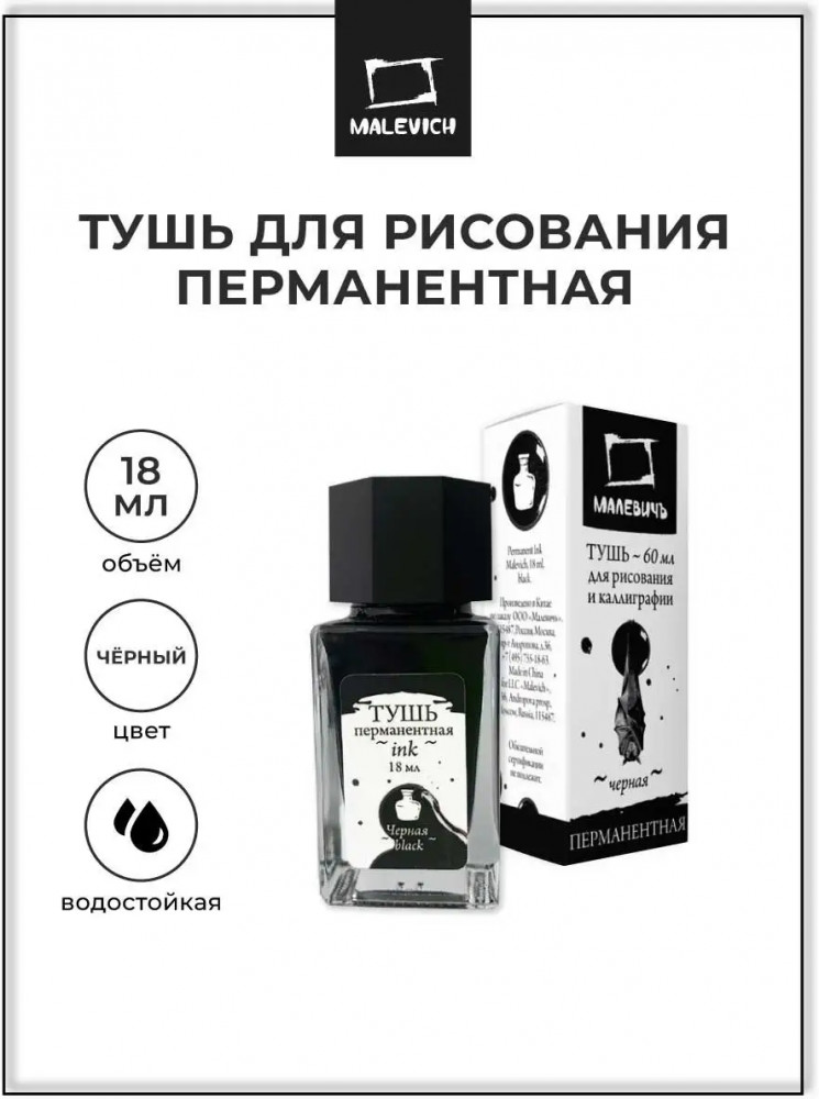 МалевичЪ Тушь для рисования и каллиграфии, черный-20% +47