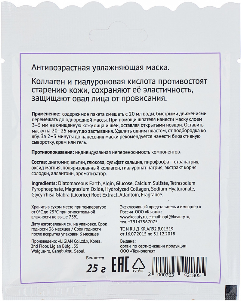 Отзывы «Маска для лица альгинатная «Collagen»»