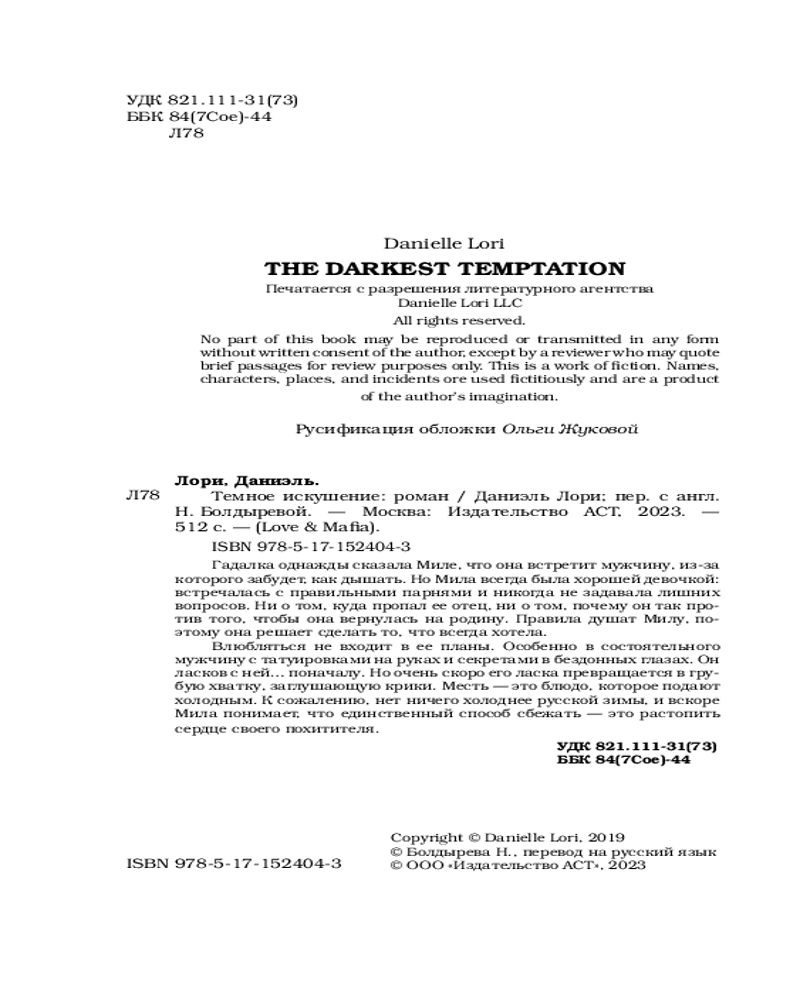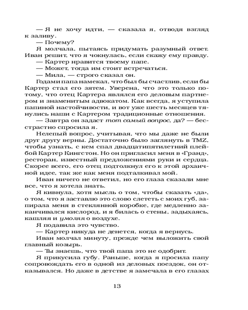 💳 Оплатить за товар можно при получении 🇰🇿 Есть бесплатная доставка по Казахстану от 1 дня 🎁 Копите бонусы с каждой покупки Серия: Love & Game Гадалка однажды сказала Миле, что она встретит мужчину, из-за которого забудет, как дышать. Но Мила всегда была хорошей девочкой: встречалась с правильными парнями и никогда не задавала лишних вопросов. Ни о том, куда пропал ее отец, ни о том, почему он так против того, чтобы она вернулась на родину. Правила душат Милу, поэтому она решает сделать то, что всегда хотела. |