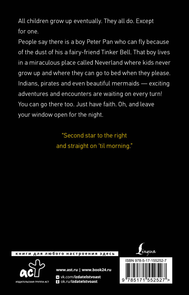 💳 Оплатить за товар можно при получении 🇰🇿 Есть бесплатная доставка по Казахстану от 1 дня 🎁 Копите бонусы с каждой покупки Серия: Exclusive Classics Paperback Джеймс Барри — шотландский драматург и романист, подаривший миру незабываемую историю о мальчике, который хотел навсегда остаться ребенком. |