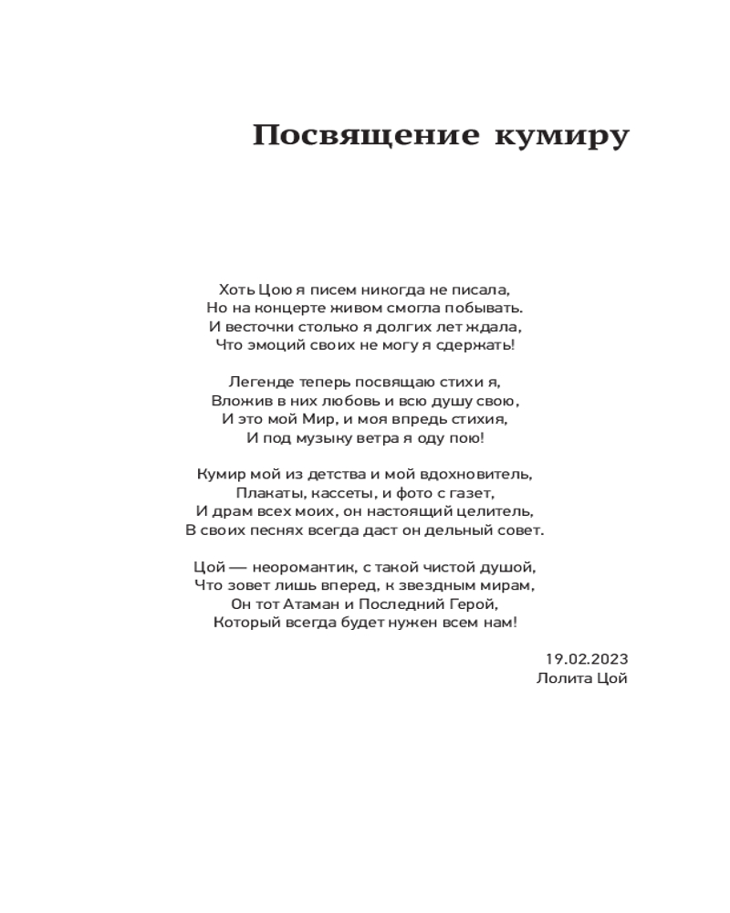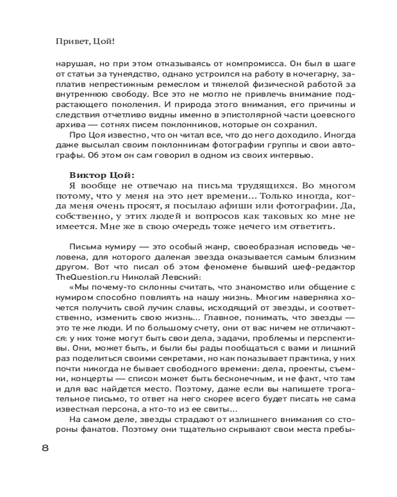 Для ценителей В. Цоя книга отличная. Сразу нахлынули воспоминания об этом времени. Покупала в подарок мужу.