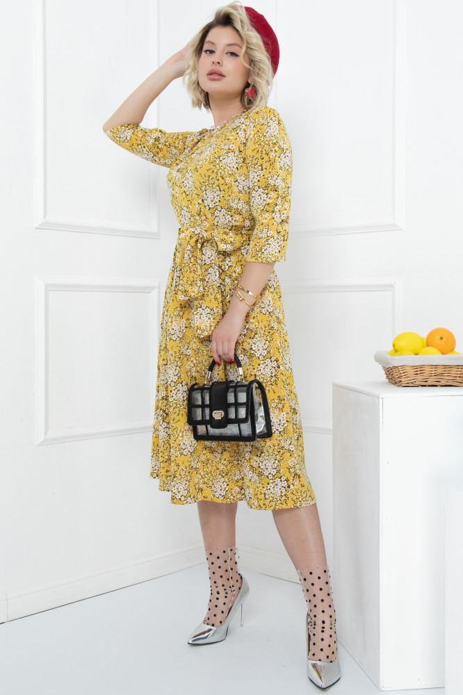 Платье очень женственное. Пошив идеальный. Сшито по великолепным лекалам. Выточки на груди на месте, талия, плечевой пояс , все хорошо, просто придраться не к чему. Размерной сетке соответствует. Покупала дочери у нее 46 размер, рост 164, но не маленькая грудь, третий размер, платье сидит прекрасно. Ткань скользкая (предупреждаю тех, кому такие не комфортны) практически не мнется. Не слишком лёгкое, довольно плотный материал, не просвечивает. Летом в нем будет жарко. Ткань красиво струится, складки на талии аккуратные, равномерные. К платью прилагается плотный, двойной пояс из такой же ткани, но с кожаным ремешком смотрится лучше. Очень приятная расцветка, не слишком яркая, чуть светлее, чем на фото сайта, принт не броский. Платье, что называется и в пир, и в мир. Однозначно рекомендую. Купила со скидкой и пожалела, что не взяла себе в другой расцветке. Не знала, как оно будет смотреться, подойдёт ли размер. Теперь знаю, что платья этого производителя достойные, обязательно куплю и себе. Спасибо производителю за качественный товар и флип КЗ за доставку. Собственно у Флип КЗ все, как всегда на высоте, начиная от разнообразия и упаковки товаров, до курьеров. Давно пользуюсь услугами интернет магазинов, Флип КЗ лучший по качеству обслуживания.