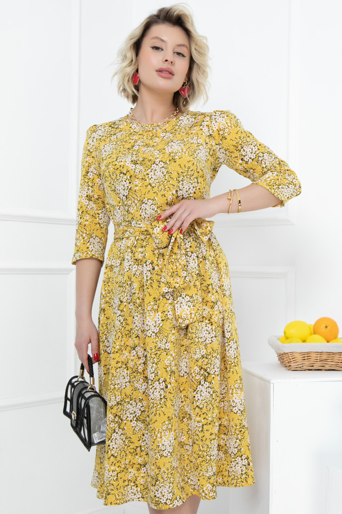 Платье очень женственное. Пошив идеальный. Сшито по великолепным лекалам. Выточки на груди на месте, талия, плечевой пояс , все хорошо, просто придраться не к чему. Размерной сетке соответствует. Покупала дочери у нее 46 размер, рост 164, но не маленькая грудь, третий размер, платье сидит прекрасно. Ткань скользкая (предупреждаю тех, кому такие не комфортны) практически не мнется. Не слишком лёгкое, довольно плотный материал, не просвечивает. Летом в нем будет жарко. Ткань красиво струится, складки на талии аккуратные, равномерные. К платью прилагается плотный, двойной пояс из такой же ткани, но с кожаным ремешком смотрится лучше. Очень приятная расцветка, не слишком яркая, чуть светлее, чем на фото сайта, принт не броский. Платье, что называется и в пир, и в мир. Однозначно рекомендую. Купила со скидкой и пожалела, что не взяла себе в другой расцветке. Не знала, как оно будет смотреться, подойдёт ли размер. Теперь знаю, что платья этого производителя достойные, обязательно куплю и себе. Спасибо производителю за качественный товар и флип КЗ за доставку. Собственно у Флип КЗ все, как всегда на высоте, начиная от разнообразия и упаковки товаров, до курьеров. Давно пользуюсь услугами интернет магазинов, Флип КЗ лучший по качеству обслуживания.