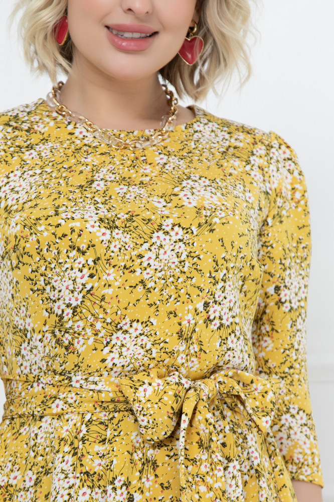 Я уже писала отзыв на платье жёлтого цвета 46 размера, которое покупала для дочери. Платье понравилось, купила себе зелёное 52 размера. Иногда покупаю одежду 50 размера и мне впору. Не стала рисковать, потому что эти платья не на фигуру "яблоко" или "груша". Хотя у меня талия выражена, но 86 см в обхвате. Рост 160, обхват бедер 109, обхват груди 106. Прилагаю фотографию, как это платье "сидит" на мне. В бедрах и плечах, руках свободно. Когда надеваешь через голову, в районе плеч туго проходит, хотя и резинка есть, не тугая, растягивается. Как уже здесь отмечалось в комментариях, платье не на широкою талию. Мне подошло хорошо, на фотографии видно, как струится ткань и смотрится довольно свободно. Ткань приятная для тела, но это синтетика , "скользкий" материал. Кто предпочитает натуральные ткани, учтите это. Вырабатывается статическое электричество, требуется использование антистатика, когда наденешь колготы, платье будет липнуть к ногам. Платье не для жаркого лета. Повторюсь, пошив аккуратный, нитки подобраны в тон, нигде не торчат, складки равномерные, нигде ничего не перекошено. Вырез практически под горло, совсем небольшой, сзади застёгивается на маленькую пуговичку белого цвета. С этим платьем хорошо будут смотреться аксессуары в виде цепочек, кулонов, бус и т.д. К платью прилагается пояс из той же ткани, двойной, плотный, длинный, позволяющий завязывать бант. Дочь носит платье с кожаным ремешком, он лучше смотрится и фиксирует талию. Спасибо Флип КЗ за скидку, за доставку товара. Всё, как всегда на высоте.