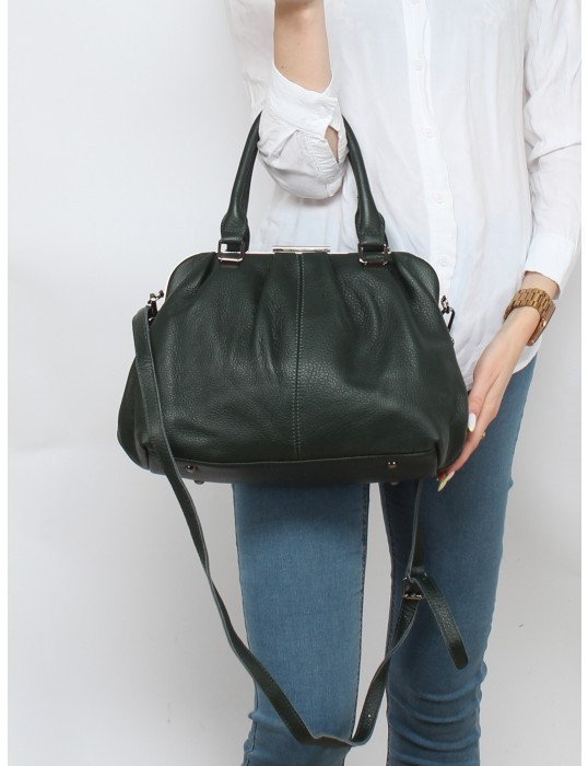 Сумка из натуральной кожи. С виду небольшая (думала будет чуть больше) Но, внутри ооочень вместительная. Единственное, не продумано крепление для плечевого ремня, нет боковых колец. Пришлось крепить на кольцах ручек, не сосем удобно, если честно.