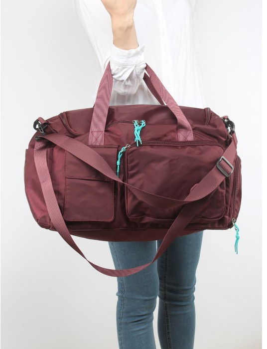 Дно сумки мягкое, не фиксированное, провисает. Для дорожной сумки хотелось бы плотнее ткань. Цвет бордовый - красивый.