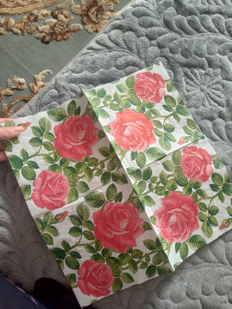 Салфетки красивые, яркие, нарядные. Хороши для праздничного стола. Но для купажа яиц не подойдут: слишком крупный рисунок.