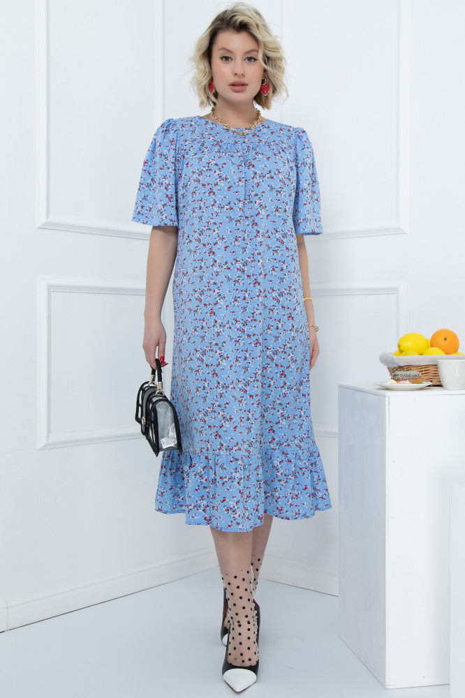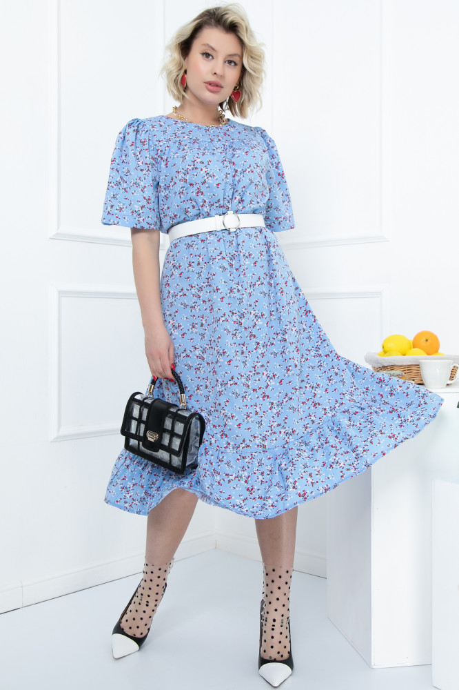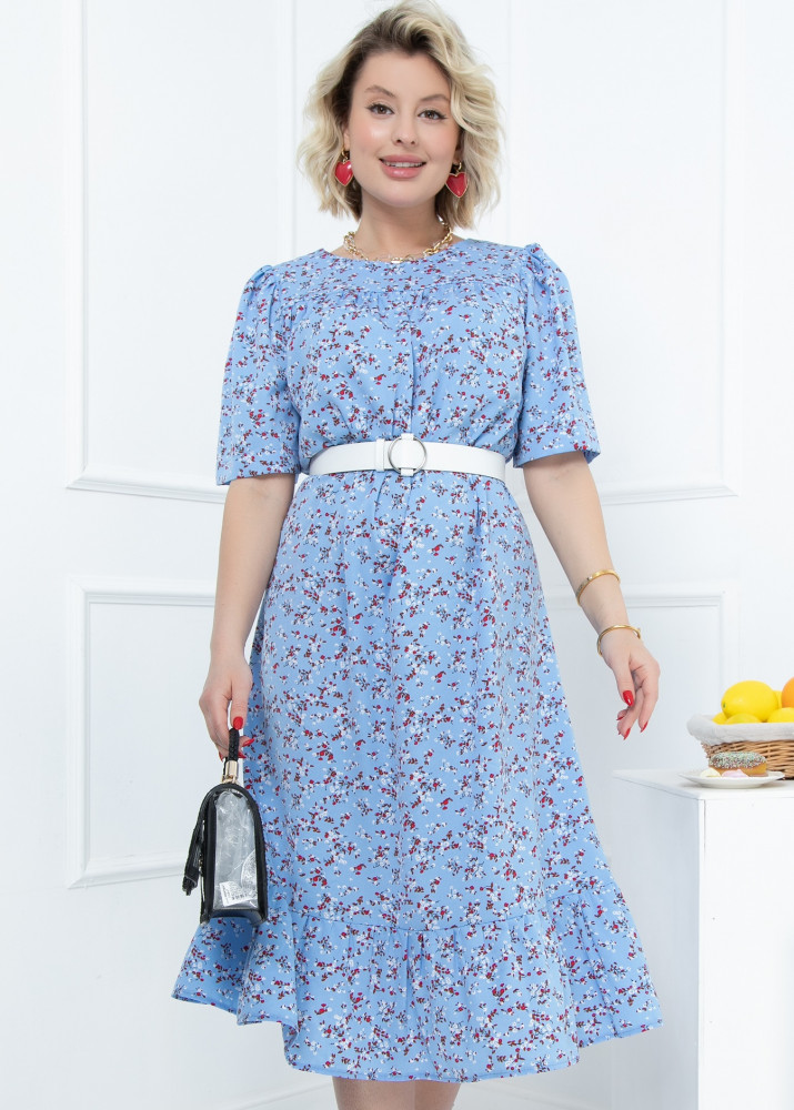 Утонченность и нежность — главные характеристики, которыми обладает платье Сантани в голубом оттенке из приятной к телу плательной ткани! По переду и на спинке платья отрезная кокетка. Низ платья оформлен сборкой. Рукава свободные и оформлены изящной сборкой. Цвет платья прекрасно сочетается практически со всеми оттенками модной палитры. Длина является практичной и удобной, как на каждый день, так и для торжественных событий! Дополнить образ и подчеркнуть линию талии Вы можете с помощью интересного пояса или ремня (на модели использован ремень Мероне, в комплект не входит). Сантани поможет создать женственный образ и не оставит Вас незамеченной!