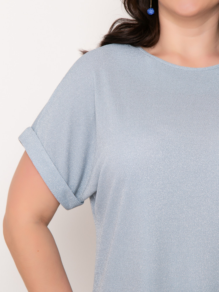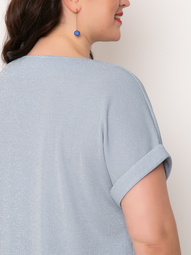 Блузка блестящая, праздничная, если хорошо приблизить фото, то будет видно блеск, цвет немного светлее из-за блеска, я бы сказала телесный. Идёт в размер, даже чуть свободнее.