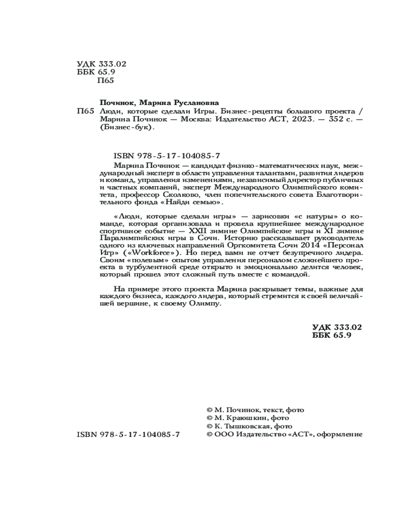 💳 Оплатить за товар можно при получении 🇰🇿 Есть бесплатная доставка по Казахстану от 1 дня 🎁 Копите бонусы с каждой покупки Серия: Бизнес-бук Марина Починок — кандидат физико-математических наук, международный эксперт в области управления талантами, развития лидеров и команд, управления изменениями, независимый директор публичных и частных компаний, эксперт Международного Олимпийского комитета, профессор Сколково, член попечительского совета Благотворительного фонда «Найди семью». |