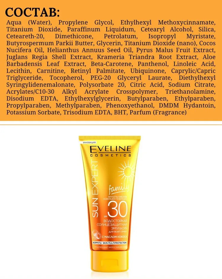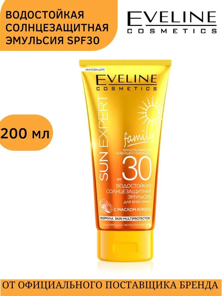 Eveline Cosmetics Эмульсия для всей семьи водостойкая солнцезащитная с маслом кокоса SPF30-20% +70