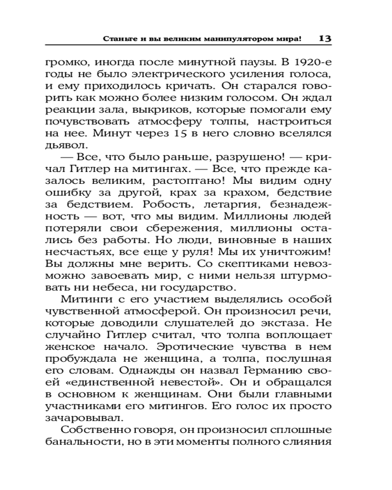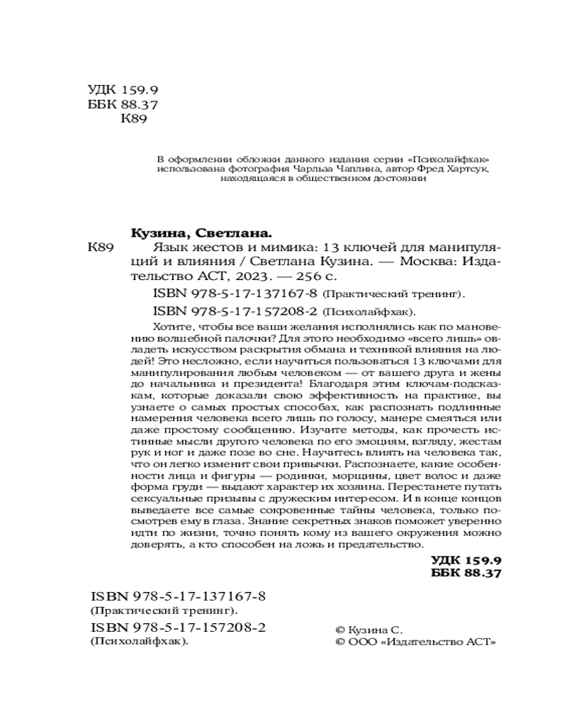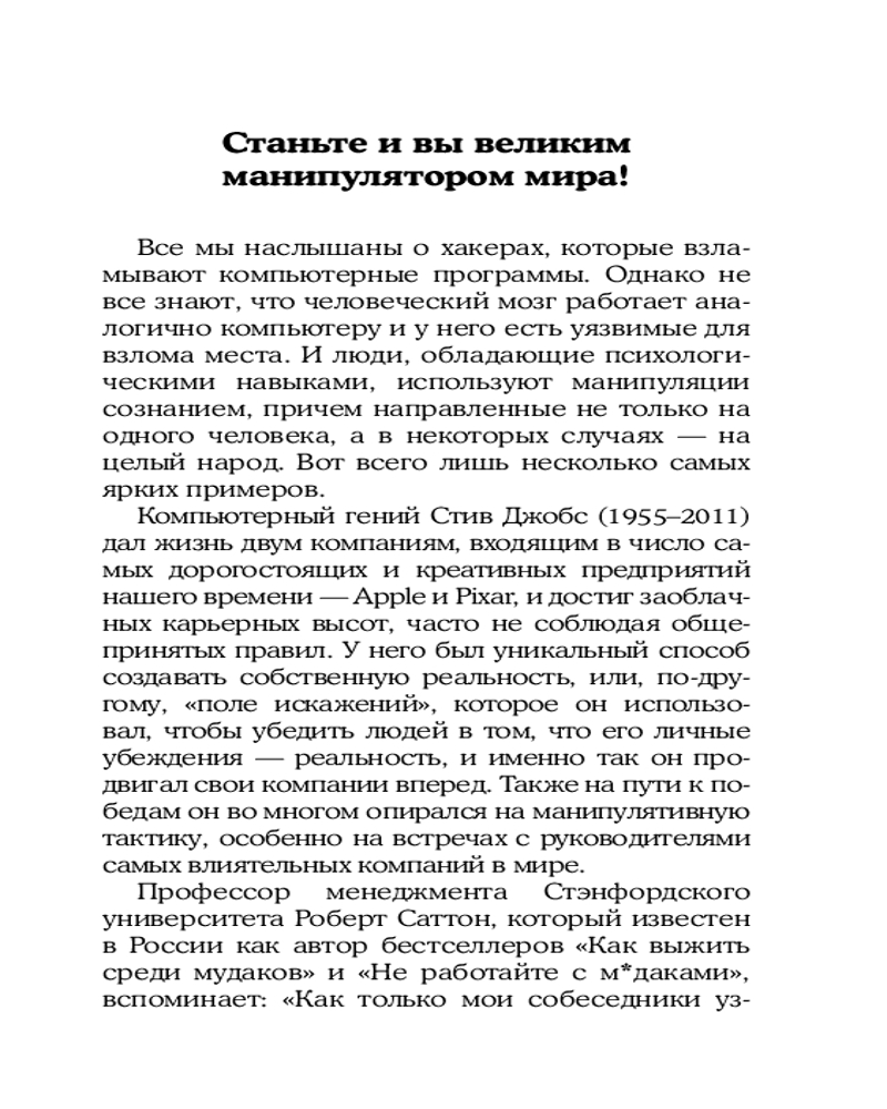 В данный момент этот товар отсутствует в продаже. Возможно, у нас найдется аналогичный или похожий товар здесь. Серия: Психолайфхак Хотите, чтобы все ваши желания исполнялись как по мановению волшебной палочки? Для этого необходимо «всего лишь» овладеть искусством раскрытия обмана и техникой влияния на людей! Это несложно, если научиться пользоваться 13 ключами для манипулирования любым человеком — от вашего друга и жены до начальника и президента!