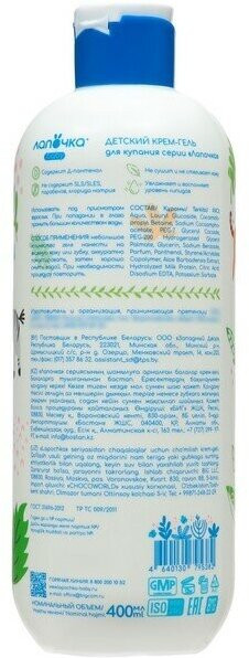 Лапочка Крем-гель для купания-15% +60 мягкость кожи медленное смывание