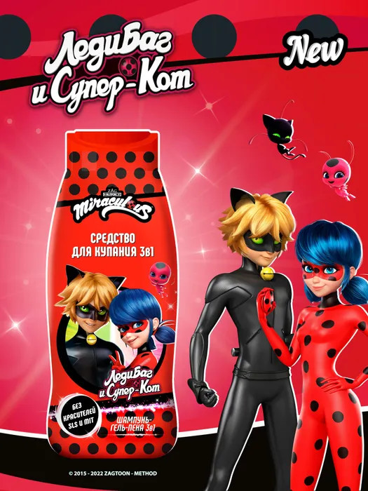 Серия: Леди Баг и Супер Кот Для супер-героев, у которых нет ни минуты свободного времени, есть супер-средство! Универсальное средство 3 в 1: можно использовать как шампунь, гель для душа и как пену для ванны. Один флакон подарит мягкое очищение и бережный уход сразу для всего тела — от макушки до самых пяточек. Состав адаптирован для детской кожи и волос, не сушит и не стягивает кожу, насыщая и питая ее. |