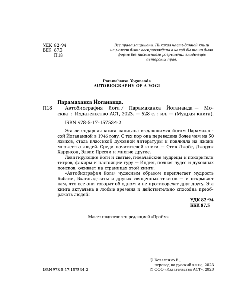 Автобиография йога+185 твердый переплет хорошая бумага удобный шрифт интересное содержание
