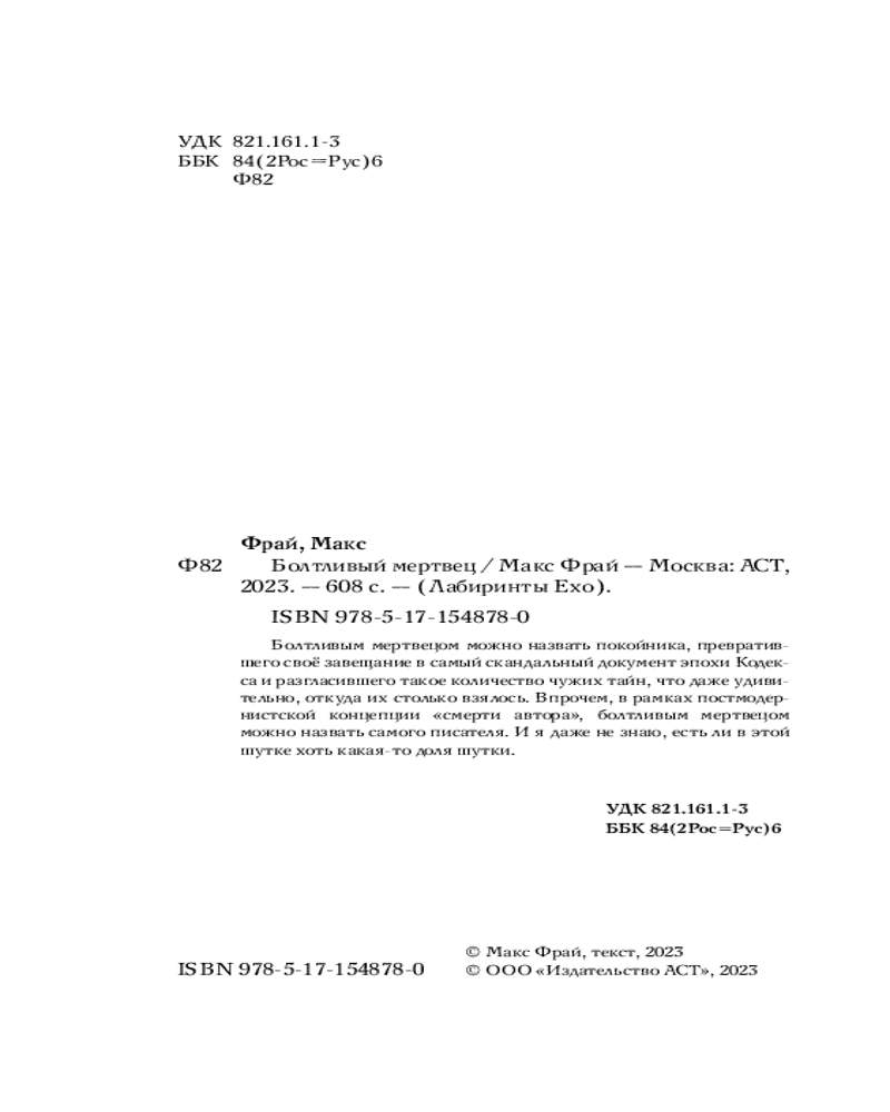 | Болтливый мертвец Макс Фрай