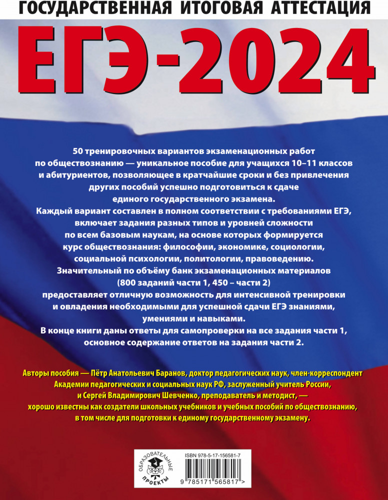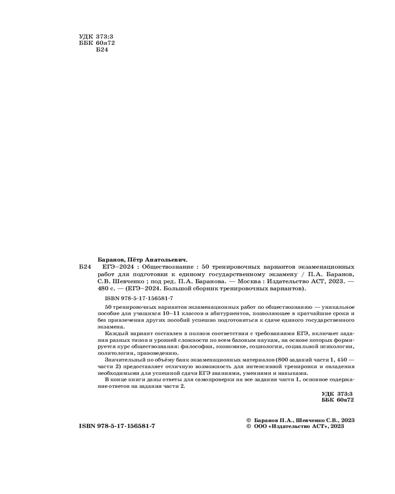 ЕГЭ-2024. Обществознание. 50 тренировочных вариантов экзаменационных работ для подготовки к единому государственному экзаменуСергей Владимирович Шевченко, Петр Анатольевич Баранов В данный момент этот товар отсутствует в продаже. Возможно, у нас найдется аналогичный или похожий товар здесь. Серия: ЕГЭ-2024. Большой сборник тренировочных вариантов 50 тренировочных вариантов экзаменационных работ по обществознанию — уникальное пособие для учащихся 10-11 классов и абитуриентов, позволяющее в кратчайшие сроки и без привлечения других пособий успешно подготовиться к сдаче единого государственного экзамена. |
