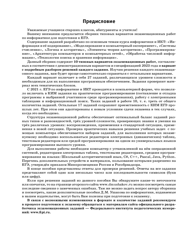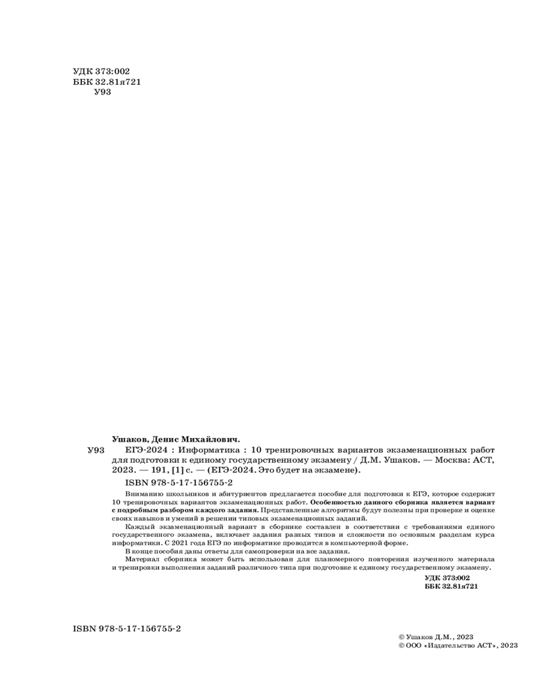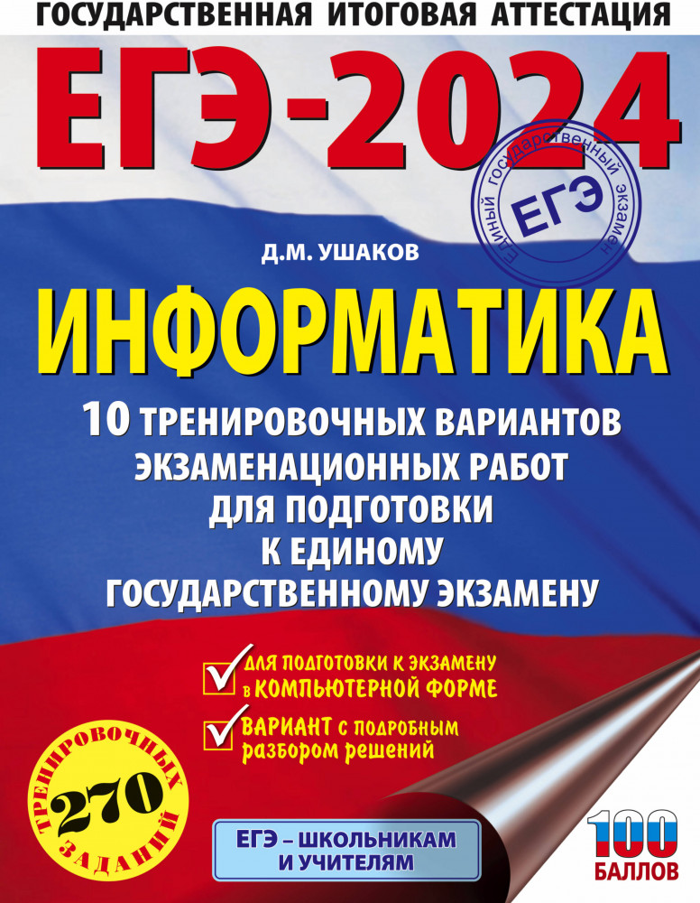 ЕГЭ-2024. Информатика. 10 тренировочных вариантов экзаменационных работ для подготовки к единому государственному экзаменуВ данный момент этот товар отсутствует в продаже. Возможно, у нас найдется аналогичный или похожий товар здесь. Серия: ЕГЭ-2024. Это будет на экзамене ю школьников и абитуриентов предлагается пособие для подготовки к ЕГЭ, которое содержит 10 тренировочных вариантов экзаменационных работ. Особенностью данного сборника является вариант с подробным разбором каждого задания. Представленные алгоритмы будут полезны при проверке и оценке своих навыков и умений в решении типовых экзаменационных заданий. |