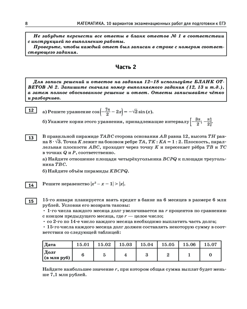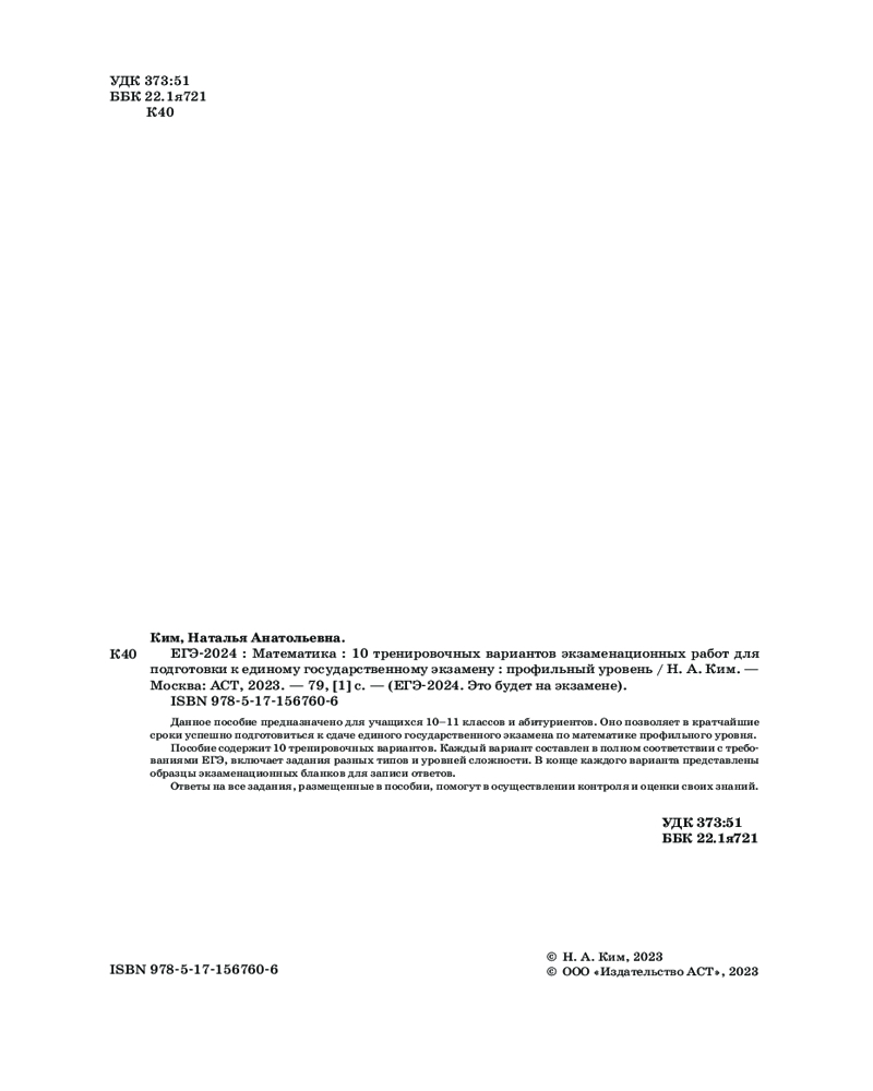 ЕГЭ-2024. Математика. 10 тренировочных вариантов экзаменационных работ для подготовки к единому государственному экзамену. Профильный уровеньВ данный момент этот товар отсутствует в продаже. Возможно, у нас найдется аналогичный или похожий товар здесь. Серия: ЕГЭ-2024. Это будет на экзамене Данное пособие предназначено для учащихся 10-11 классов и абитуриентов. Оно позволяет в кратчайшие сроки успешно подготовиться к сдаче единого государственного экзамена по математике профильного уровня. |