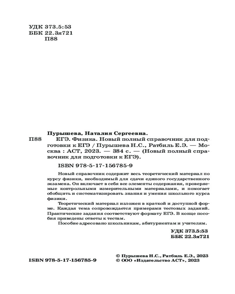 ЕГЭ. Физика. Новый полный справочник для подготовки к ЕГЭЕлена Эммануиловна Ратбиль, Наталия Сергеевна Пурышева В данный момент этот товар отсутствует в продаже. Возможно, у нас найдется аналогичный или похожий товар здесь. Серия: Новый полный справочник для подготовки к ЕГЭ Новый справочник содержит весь теоретический материал по курсу физики, необходимый для сдачи единого государственного экзамена. Он включает в себя все элементы содержания, проверяемые контрольно-измерительными материалами, и помогает обобщить и систематизировать знания и умения школьного курса физики. |