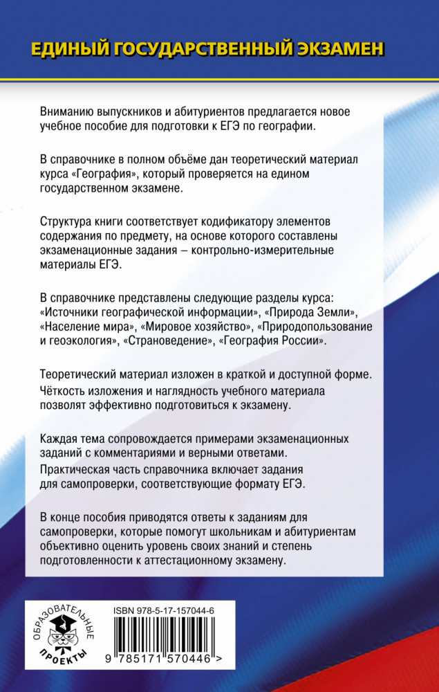 ЕГЭ. География. Новый полный справочник для подготовки к ЕГЭАнна Борисовна Эртель, Юлия Алексеевна Соловьева В данный момент этот товар отсутствует в продаже. Возможно, у нас найдется аналогичный или похожий товар здесь. Серия: Новый полный справочник для подготовки к ЕГЭ Справочник, адресованный выпускникам средней школы и абитуриентам, содержит весь теоретический материал курса географии, который проверяется на едином государственном экзамене. |
