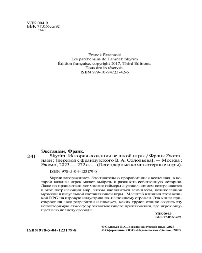 💳 Оплатить за товар можно при получении 🇰🇿 Есть бесплатная доставка по Казахстану от 1 дня 🎁 Копите бонусы с каждой покупки Серия: Легендарные компьютерные игры Skyrim — пятая игра линейки The Elder Scrolls — заслуженно обрела мировую славу. Запустив игру, вы оказываетесь в детально проработанной фэнтезийной вселенной, населенной героями и наемниками разных мастей, монстрами и, конечно же, могущественными драконами. Вашему персонажу, который пока еще не знает о великой судьбе, выпавшей на его долю, предстоит долгий и извилистый путь, в конце которого его ждет встреча с Разрушителем Миров Алдуином. |