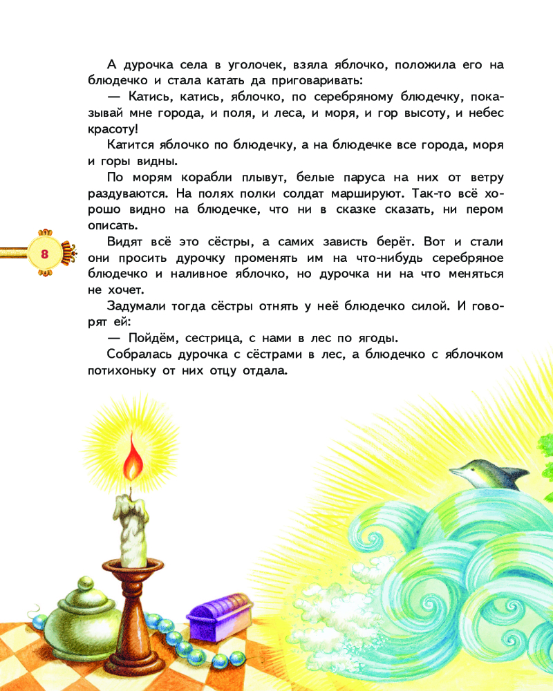 Драконы, превращения и говорящие животные создадут вокруг ребёнка сказочную атмосферу, проверенные временем тексты познакомят его с лучшими произведениями русского народного творчества, а красочные иллюстрации Марины Литвиновой, которые встречаются на каждом развороте, ярко передадут историю и дух русской культуры.