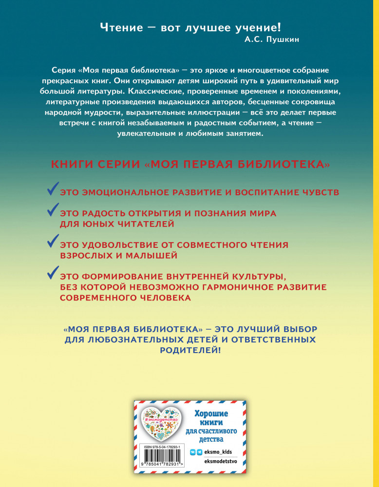 Мечта всех родителей — подружить ребёнка с книгой. Ведь книги дарят маленькому читателю целый мир: заинтересовывают, развлекают, заставляют задуматься. Всеми этими качествами обладают книги серии «Моя первая библиотека». И они наверняка понравятся начинающим читателям с первого взгляда!