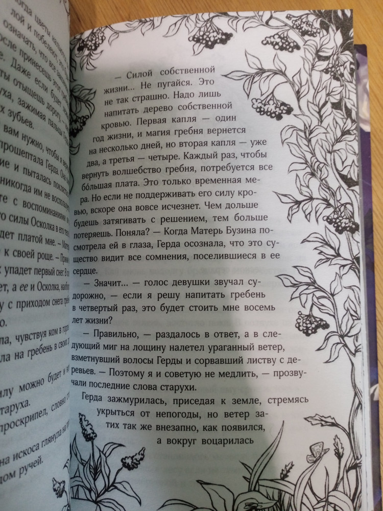 Я поражена, иллюстрации у книги это просто шик, а еще это замечательно красивая закладка! Если вы спросите меня стоить ли эту книгу приобрести? Я отвечаю Да однозначно Да и без вопросов я отвечу только да! Книга Андерсена про Кая и Герду была моя любимая в детстве, так что я точно рекомендую
