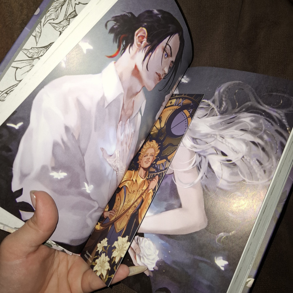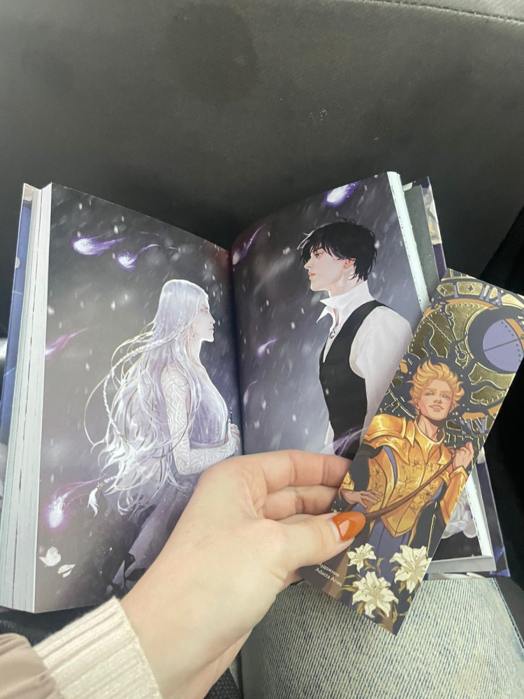 Книга пришла запечатанной, внутри арты персонажей и в подарок закладка так же с героями