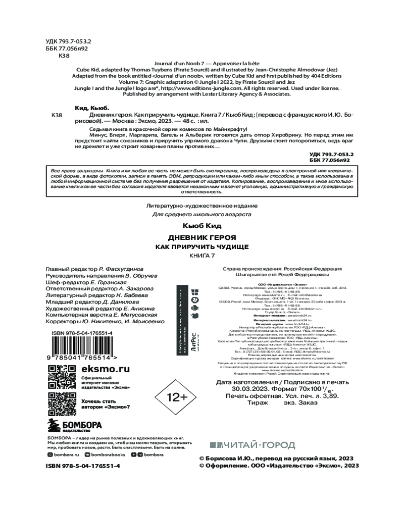 💳 Оплатить за товар можно при получении 🇰🇿 Есть бесплатная доставка по Казахстану от 1 дня 🎁 Копите бонусы с каждой покупки Серия: Майнкрафт. Дневник героя в комиксах Седьмая часть красочного комикса по «Майнкрафту»! Приготовься к невероятным приключениям в Minecraft! Минус, Блерп, Маргарита, Багель и Альберик полны решимости сразиться с Хиробрином. Но для этого им необходимо как следует подготовиться. Где найти союзников? И как успешно приручить малыша Чупи? Друзьям стоит поторопиться, ведь враг не дремлет и уже строит коварные планы против них... |