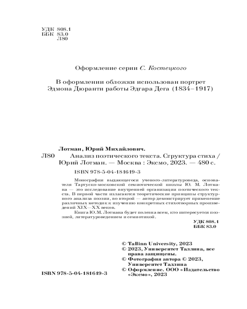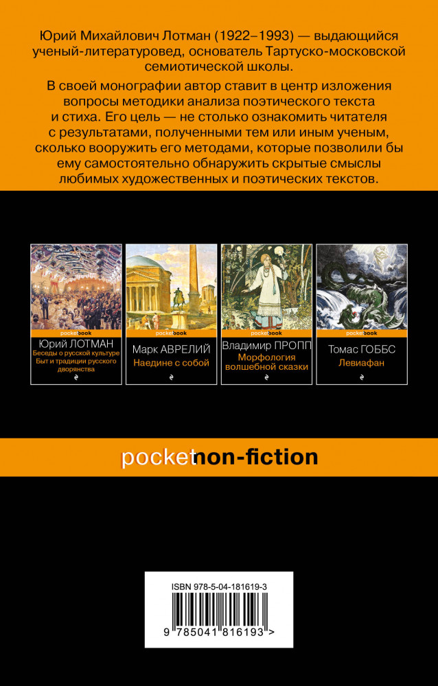 Монография «Анализ поэтического текста» составляет важнейшую часть научного наследия всемирно известного российского ученого, филолога и культуролога, основоположника отечественной семиотики.