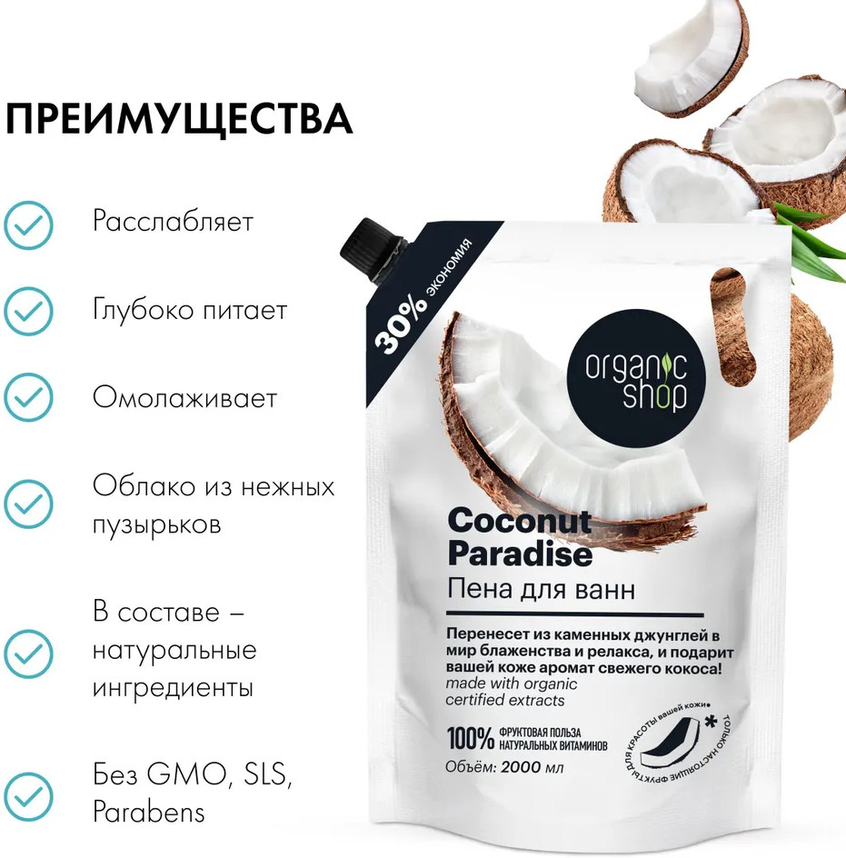 Organic Shop Пена для ванн «Coconut Paradise»