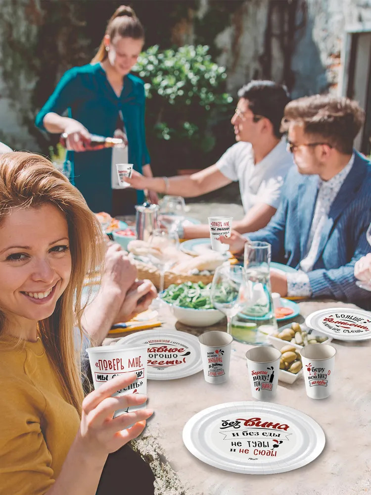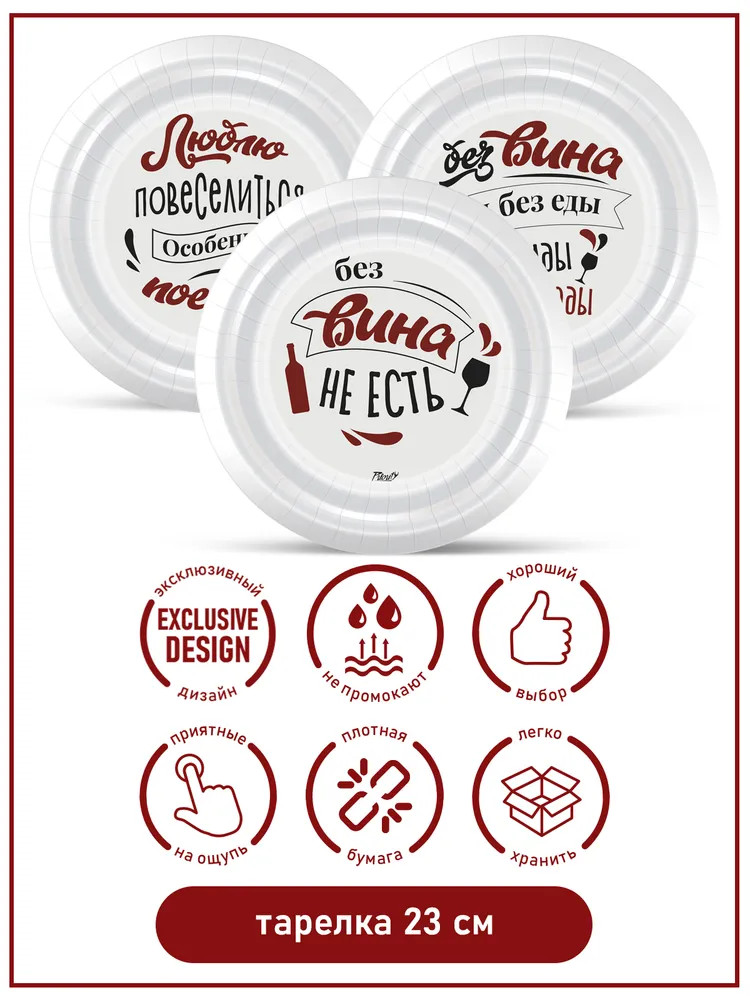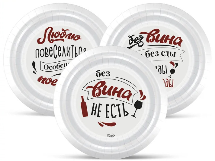 PrioritY Набор тарелок одноразовых «Без вина не есть!»-40% +22