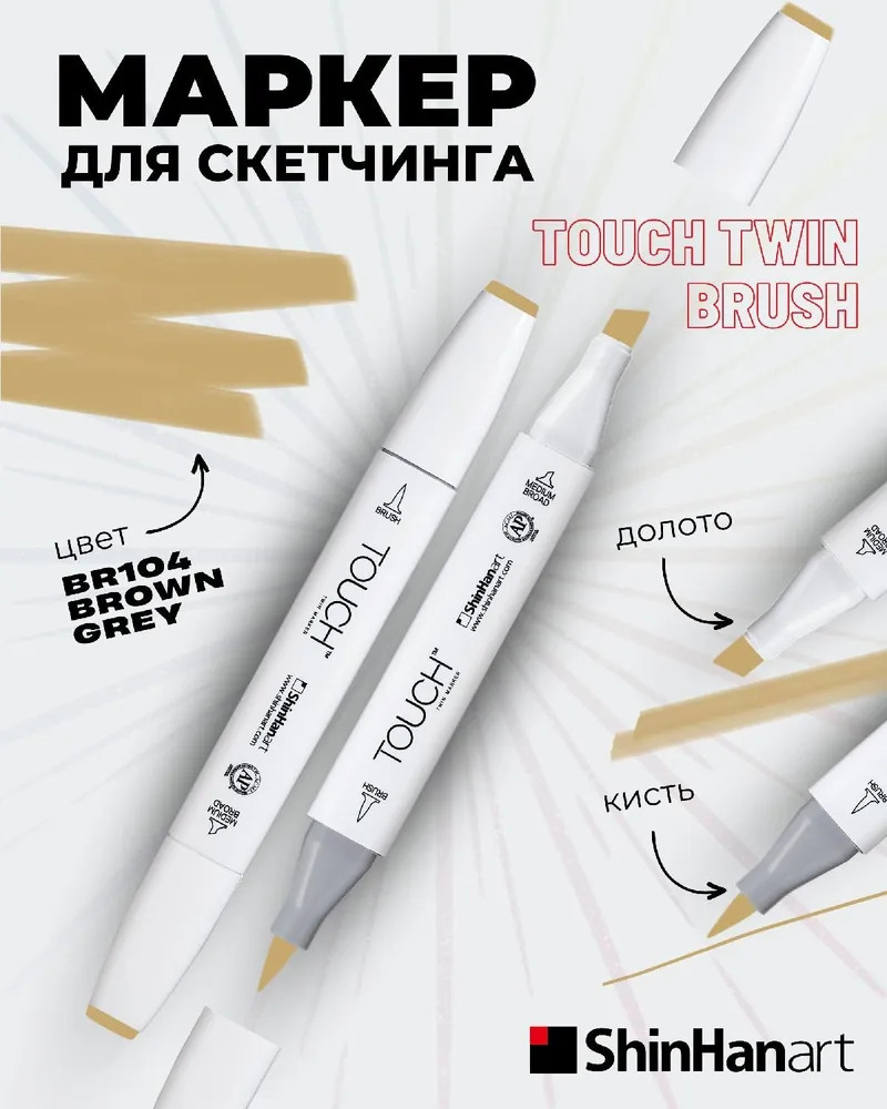 Touch Маркер на спиртовой основе двусторонний, BR104 Коричнево-серый
