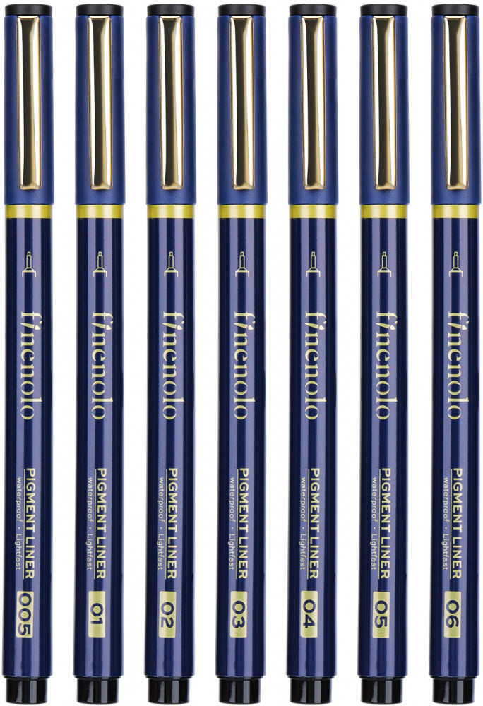 Finenolo Набор ручек капиллярныхВ данный момент этот товар отсутствует в продаже. Возможно, у нас найдется аналогичный или похожий товар здесь. Набор капиллярных ручек Finenolo — незаменимый инструмент для тех, кто увлекается искусством и дизайном или использует ручки в своей профессиональной деятельности. В наборе 7 ручек с различными размерами линий: 0,2, 0,25, 0,3, 0,35, 0,4, 0,45, 0,5 мм. Корпус ручек имеет насыщенный темный синий корпус с металлическим золотистым клипом, что придает им элегантный вид. |