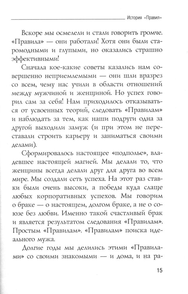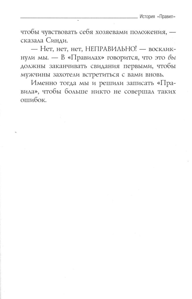 Спасибо вам за книгу "Правила. Как выйти замуж за мужчину своей мечты". Я брала ее в подарок для своей подруги. Она просто не может оторваться от книги. Берет много полезного из книги.
