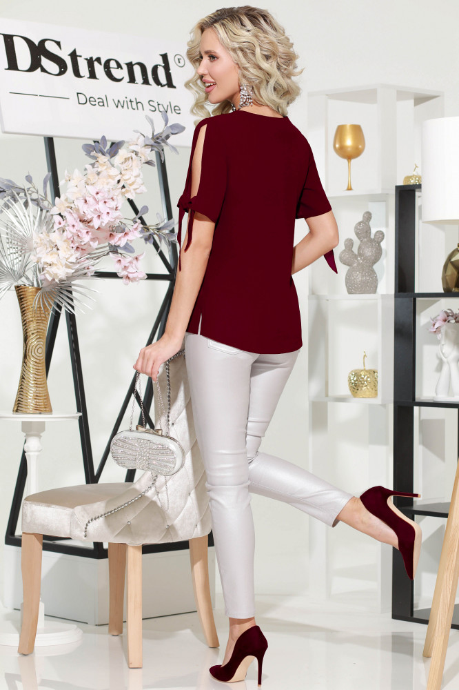 Легкая элегантная блузка из крепа для ваших летних образов. Свободный крой позволяет носить ее навыпуск и заправленной, сочетать с брюками и юбками. «Изюминка» блузки — короткий рукав с разрезом и завязками, которые не только позволят регулировать его ширину по вашей руке, но и сделают ваш повседневный образ более нарядным.