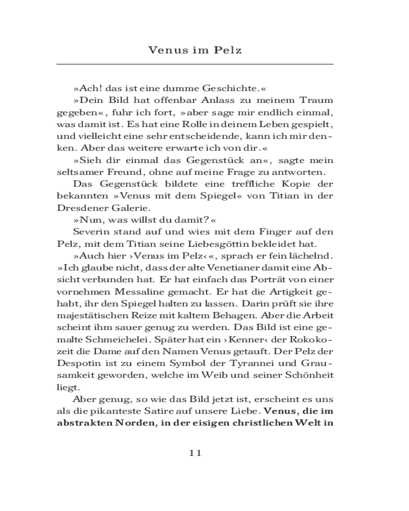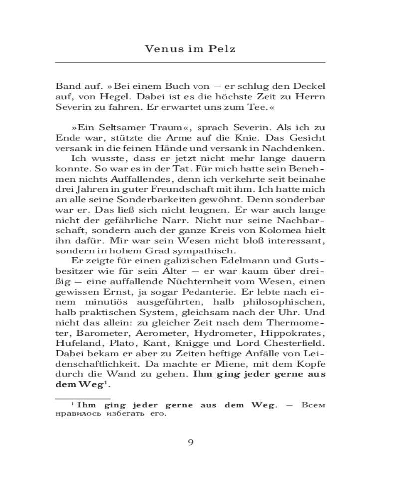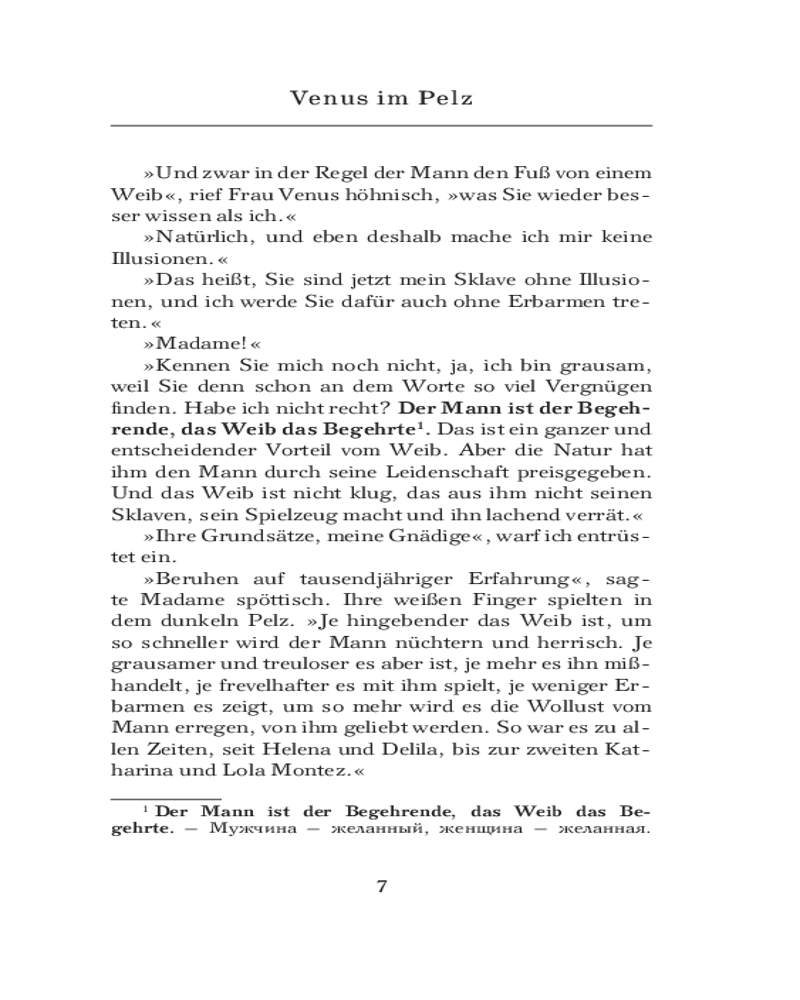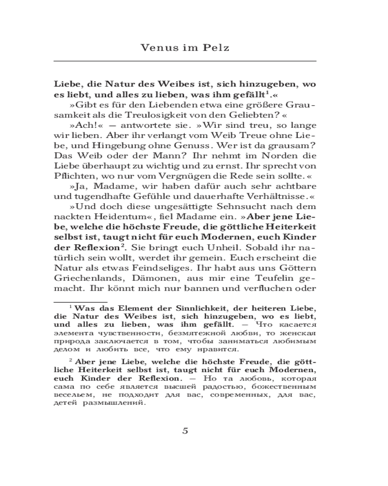 💳 Оплатить за товар можно при получении 🇰🇿 Есть бесплатная доставка по Казахстану от 1 дня 🎁 Копите бонусы с каждой покупки Серия: Легко читаем по-немецки Австрийский писатель Леопольд фон Захер-Мазох — одна из ярких фигур европейского декаданса. В его произведениях психологически глубоко и точно раскрываются любовная зависимость и неразрывная связь боли с наслаждением. Склонность получать удовольствие, испытывая унижение и боль, получила свое название от фамилии писателя — мазохизм. |