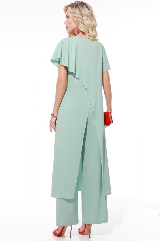 На параметры 107-86-104 заказала размер 54, который по таблице размеров должен соответствовать параметрам по максимуму 110-92-118. Скажу сразу, что на такие параметры он будет мал, имейте ввиду, брюки не налезут точно, поскольку на мои 104 я вошла впритык, не свободно и резинка у брюк довольно тугая. Ростовка хорошая, на рост до 175 примерно, я 164- надо укорачивать брюки. Фото обработки края блузы прилагаю.