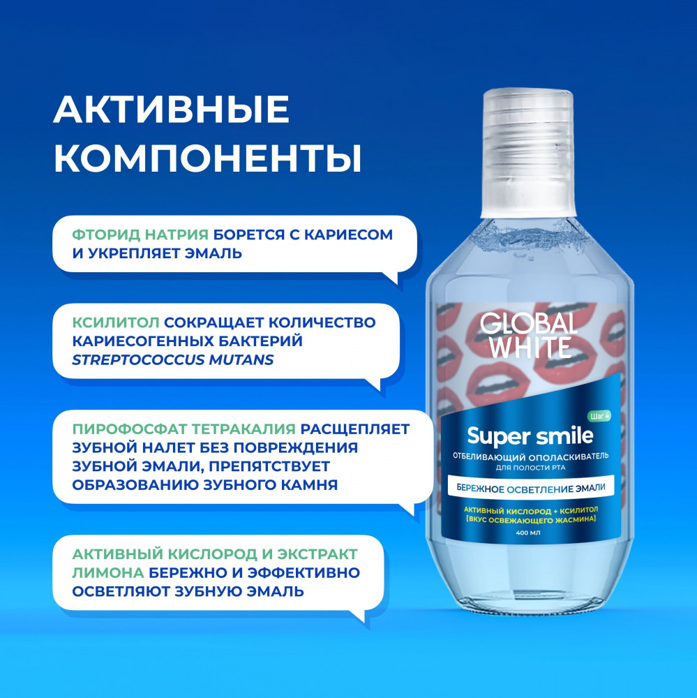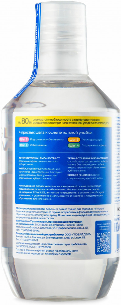 Global White Ополаскиватель для полости рта отбеливающий-25% +31