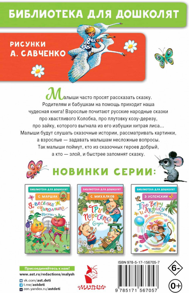 💳 Оплатить за товар можно при получении 🇰🇿 Есть бесплатная доставка по Казахстану от 1 дня 🎁 Копите бонусы с каждой покупки Серия: Библиотека для дошколят В нашей книге из серии «Библиотека для дошколят» русские народные сказки для самых маленьких детей, которые ещё не умеют читать. Это «Колообок», «Коза-дереза», «Про лисичку со скалочкой», «Заюшкина избушка» и «Гуси-лебеди». Эти сказки рекомендованы педагогами, которые работают с дошкольниками и формируют интерес к чтению у малышей. |
