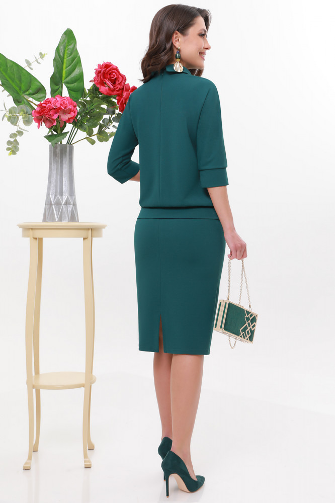Очень милый костюм на повседневную жизнь. Ткань трикотаж, мягкий и комфортный, очень красивого насыщенного синего цвета. Взяла на размер больше, не ошиблась. Юбка без подкладки, без молнии. На блузе, есть молния, на спинке сверху.